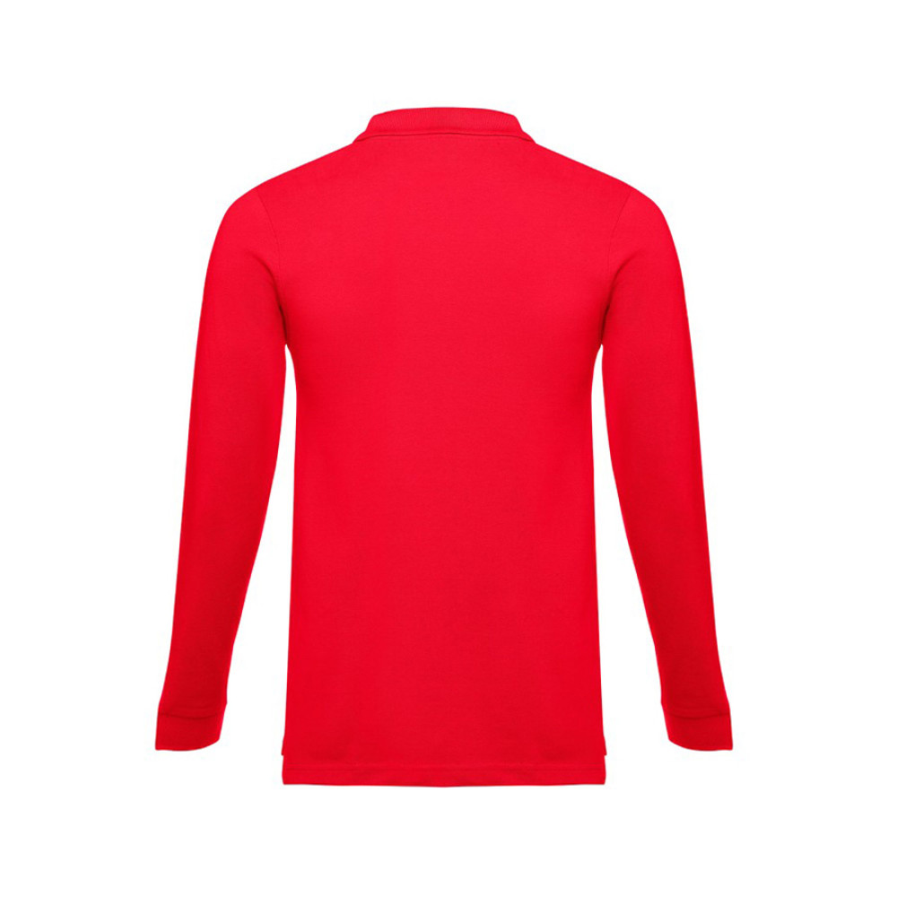 Мужская рубашка-поло с длинным рукавом из хлопковой ткани-пике. Полотно футболки упругое и гладкое благодаря обработке ферментами "enzyme wash" и сохраняет форму при стирке. Модель полуприлегающего силуэта. Благодаря манжете из риба 1х1 рукав смотрится очень аккуратно. Воротник также выполнен из риба 1х1, внутри ворота - укрепляющая тесьма по горловине. Планка с 3 пуговицами в цвет основной ткани изделия. Запасная пуговица на ярлыке во внутреннем боковом шве.