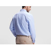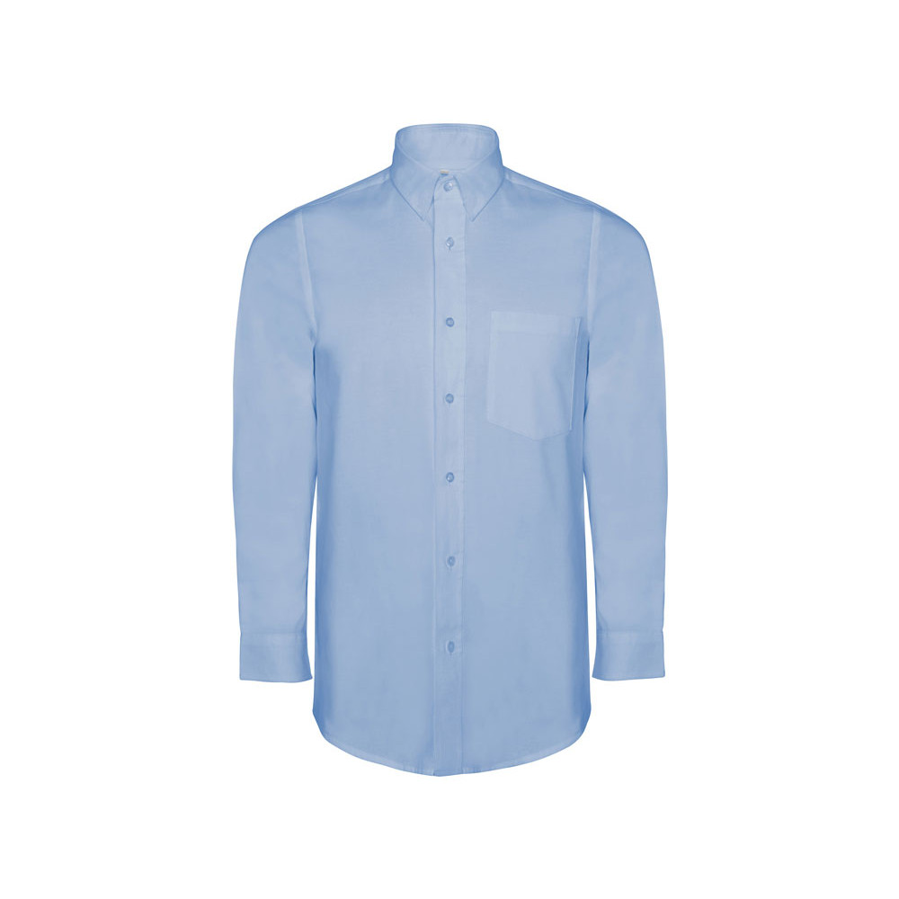 Мужская рубашка с длинным рукавом, накладной карман слева. Планка на пуговицах. Отложной воротник на стойке. Манжета регулируется по ширине с помощью 2-х пуговиц. Кокетка на спинке.