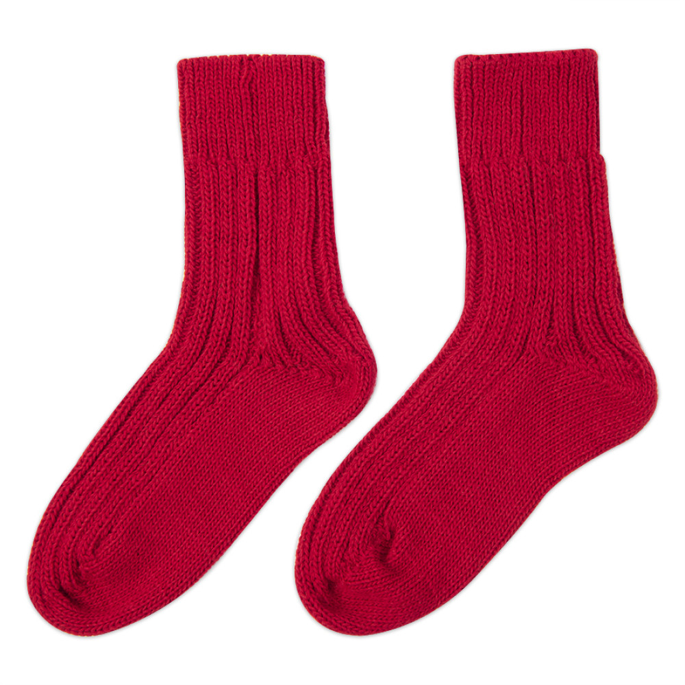 Носки изготовлены из высококачественной пряжи с шерстью и не создают дискомфорта при носке Универсальные: подходят женщинам, мужчинам, подросткам.Цвет пряжи близкий Pantonе 201 С.Резинка по краю изделия подобрана в цвет основной пряжи