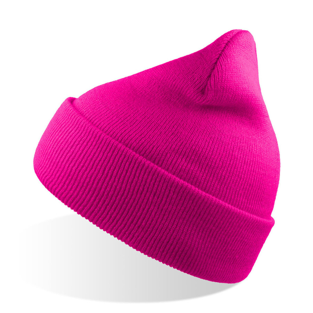 Шапка вязаная двойная WIND с отворотом, цвет неоновый розовый