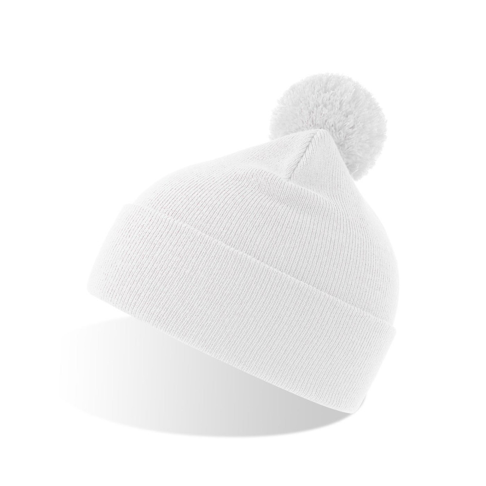 Шапка вязаная двойная Wind-S с помпоном, цвет белый