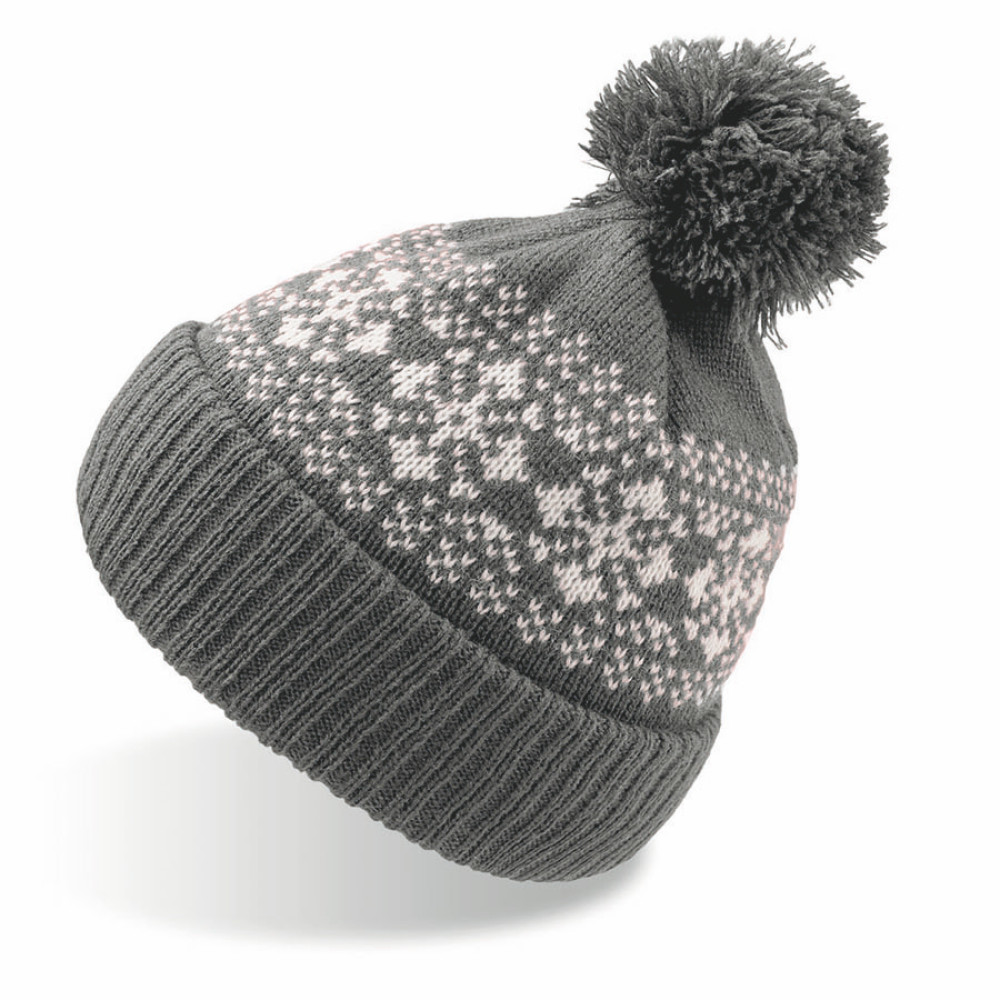 Шапка вязаная с снежинками и помпоном FLAKE_темно-серый,100% акрил