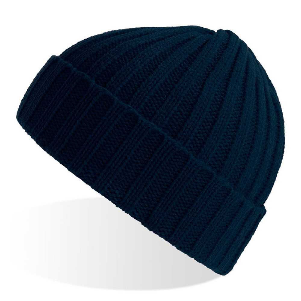Шапка вязаная SHORE с отворотом из материала rPET/рециклированного полиэстера, цвет темно-синий