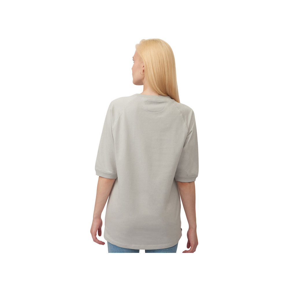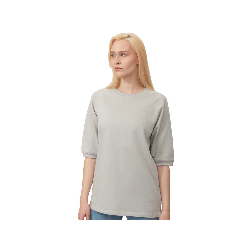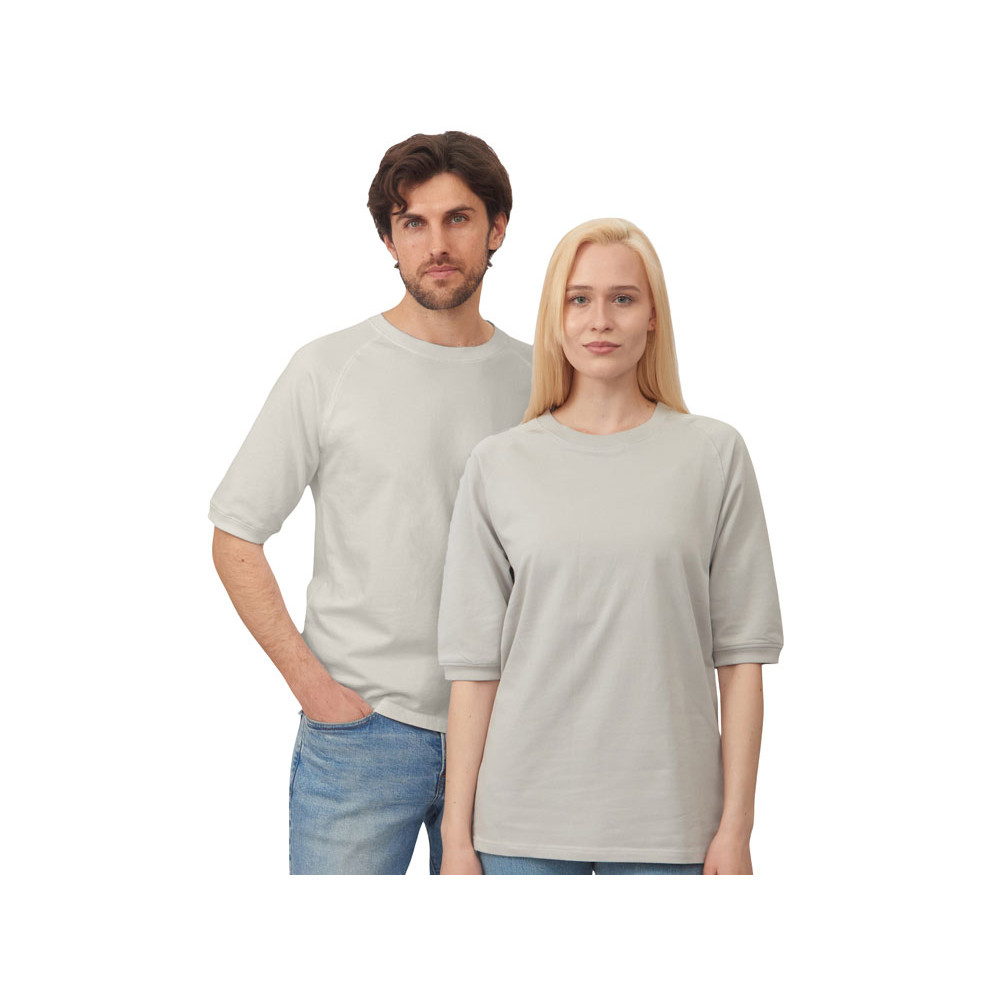 Футболка выполнена из хлопкового френч терри с петельками на изнаночной стороне. Горловина обработана рибом 2х2 и дополнительно усилена тесьмой-елочкой с внутренней стороны спинки и дополнена кокеткой по спинке для нанесения логотипа клиента. Рукав реглан продублирован рибом по низу. Разрезы в боковых швах. Гладкая поверхность полотна позволяет идеально нанести изображение. Футболка комфортного силуэта.