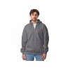 Худи с капюшоном ворот на молнии. Шнур в капюшоне с металлическими наконечниками. Отделка горловины спинки внутри тесьмой, Риб 2х2 по низу изделия и манжетам. Удобный карман кенгуру.