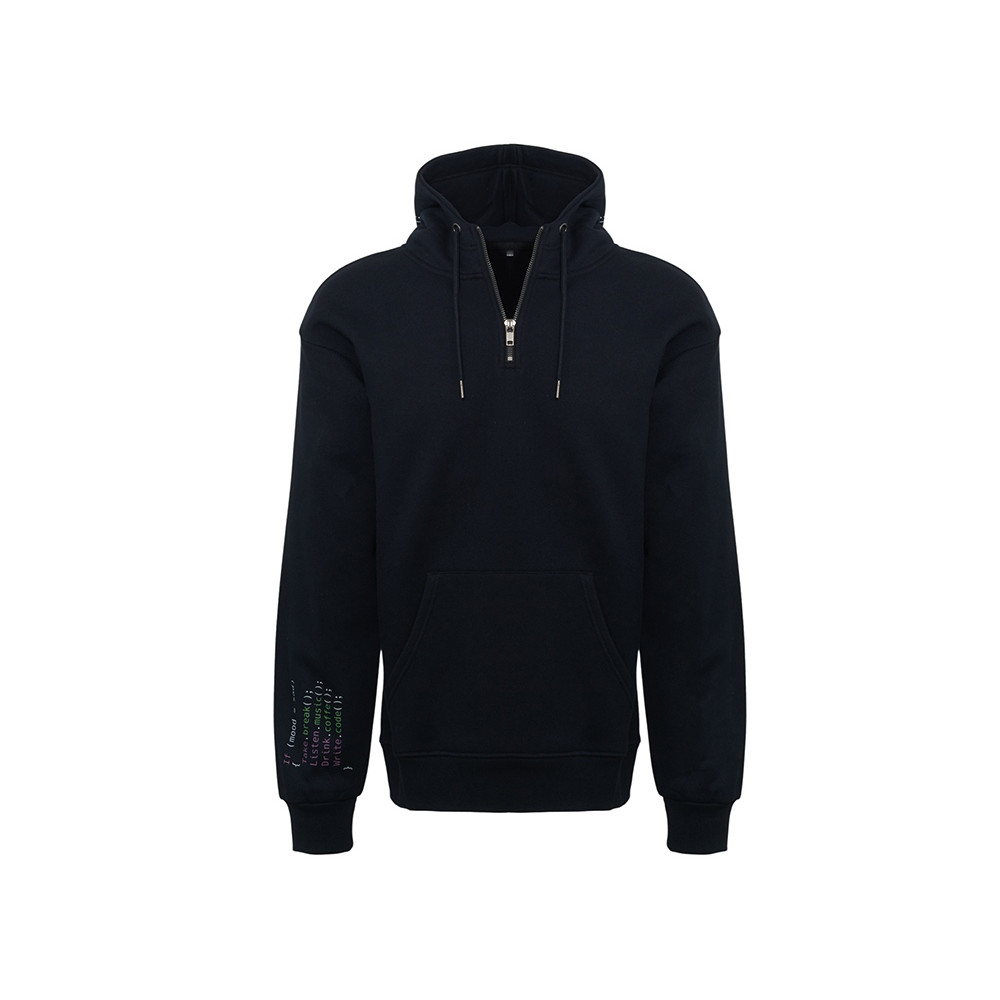 Худи с капюшоном ворот на молнии. Шнур в капюшоне с металлическими наконечниками. Отделка горловины спинки внутри тесьмой, Риб 2х2 по низу изделия и манжетам. Удобный карман кенгуру.