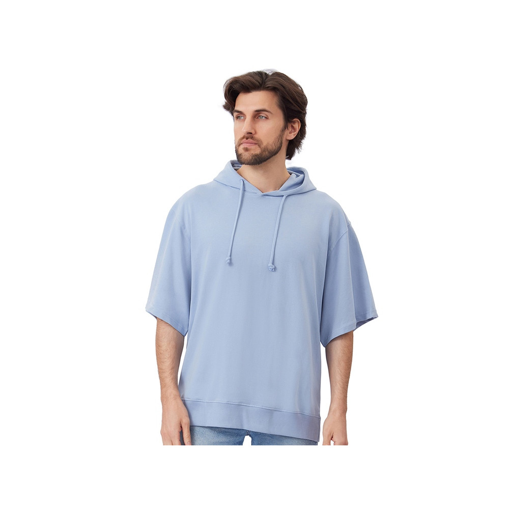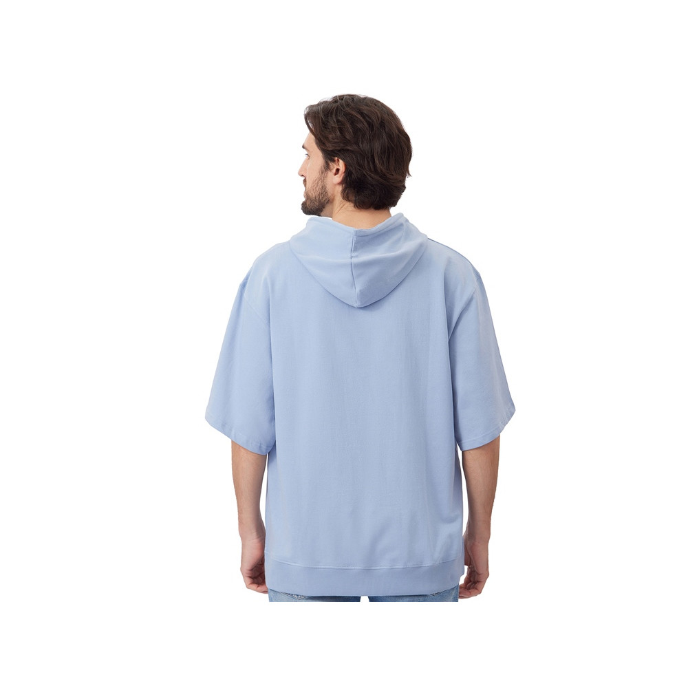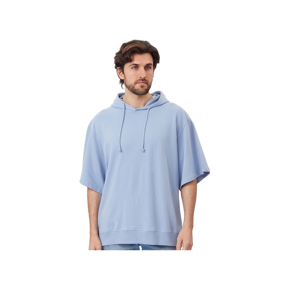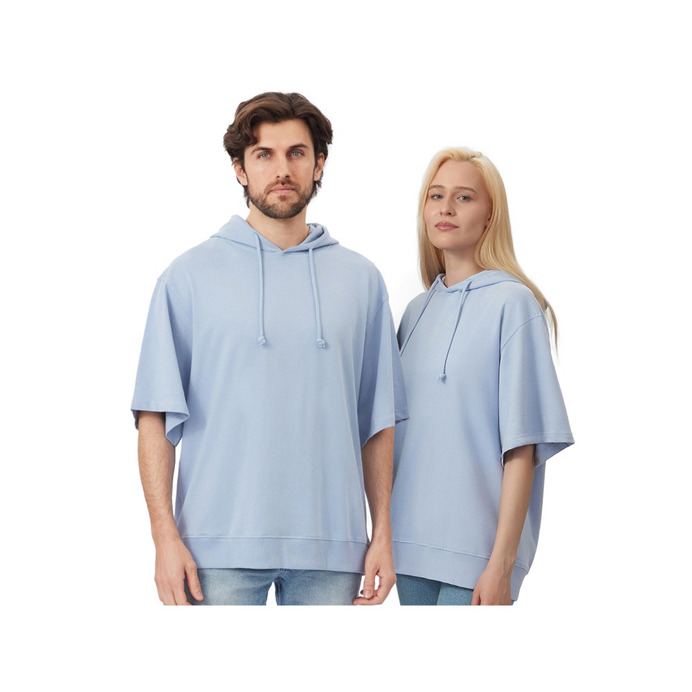 Худи с коротким рукавом выполнено из хлопкового френч терри с петельками на изнаночной стороне. Подкладка капюшона выполнена из основного полотна для объемной посадки. Модель комфортной и актуальной посадки оверсайз отлично подходит для обычной жизни и в качестве промо мерча.