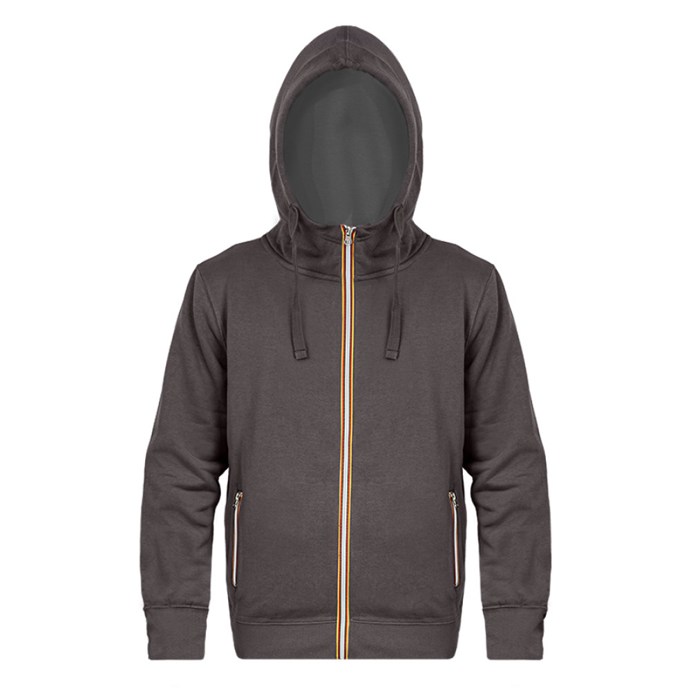 Комфортная толстовка худи на молнии LAS VEGAS MAN из футера с начёсом, плотностью 280 г м² и смесовым составом: 80% хлопка и 20% полиэстера. С таким составом изделия не деформируются и служат долго. Капюшон с подкладом и удобным высоким воротником-стойкой. Шов горловины усилен мягкой лентой Низ толстовки и рукава из эластичной рибаны. Основная молния и молнии в боковых карманах - контрастные. Материал: футер с начёсом, 80% хлопка и 20% полиэстера, 280 г м².