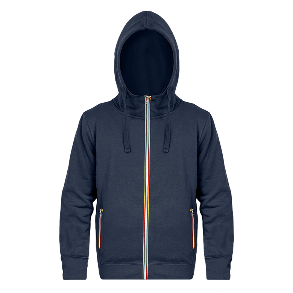 Комфортная толстовка худи на молнии LAS VEGAS MAN из футера с начёсом, плотностью 280 г м² и смесовым составом: 80% хлопка и 20% полиэстера. С таким составом изделия не деформируются и служат долго. Капюшон с подкладом и удобным высоким воротником-стойкой. Шов горловины усилен мягкой лентой Низ толстовки и рукава из эластичной рибаны. Основная молния и молнии в боковых карманах - контрастные. Материал: футер с начёсом, 80% хлопка и 20% полиэстера, 280 г м².
