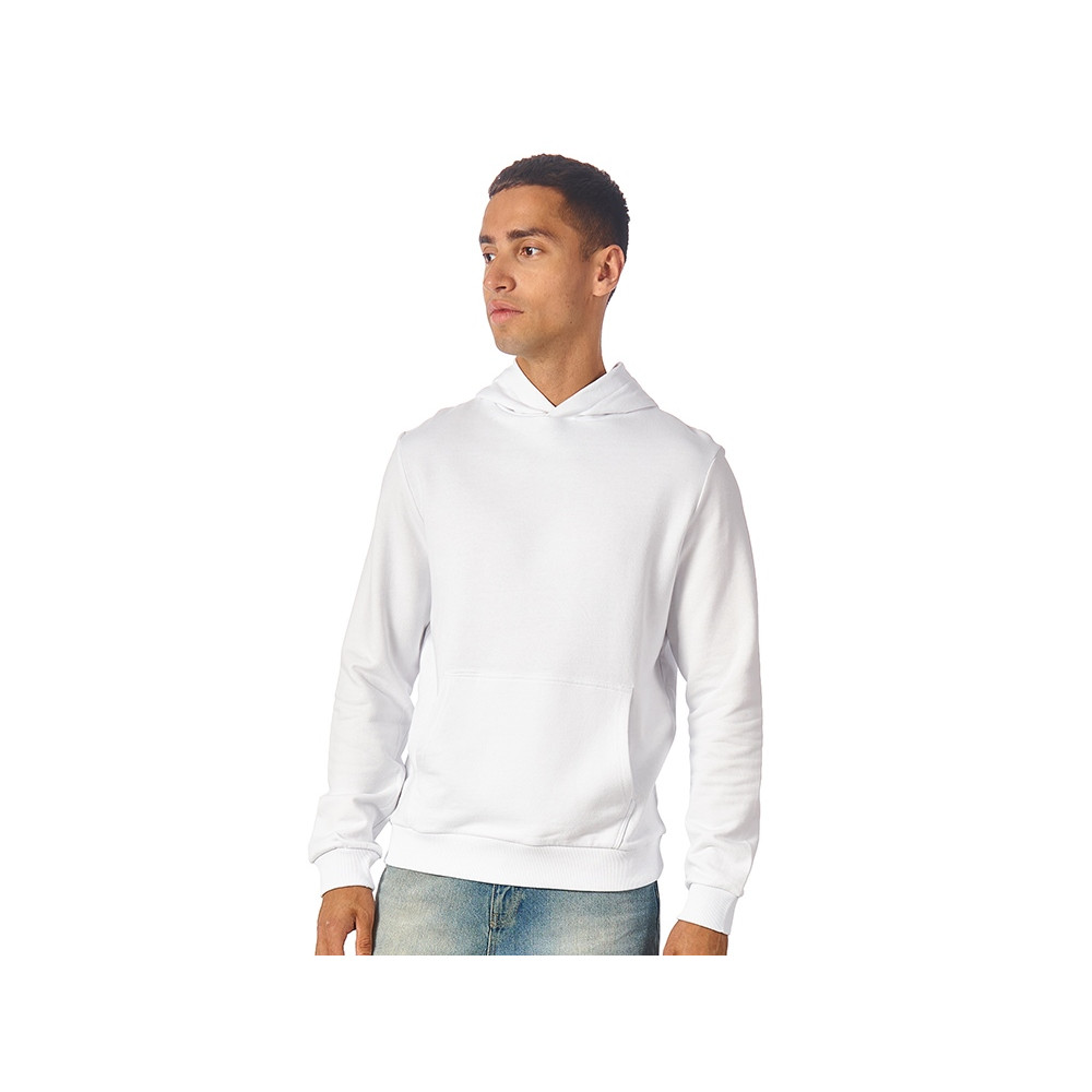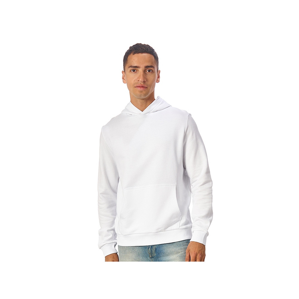 Толстовка с капюшоном (худи) из плотного хлопкового 3х ниточного футера. В капюшоне подкладка в тон, а горловина спинки дополнительно укреплена тесьмой с выделкой елочка. Капюшон без шнурков – ничего не отвлекает от вашего брендирования. Манжеты и низ изделия отделаны рибом 2х2. Глубокий комфортный карман кенгуру на полочке. Полотно из утяжеленного хлопкового футера внутри с петельками без начеса.