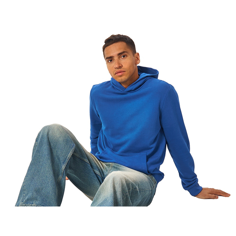 Толстовка с капюшоном (худи) из плотного хлопкового 3х ниточного футера. В капюшоне подкладка в тон, а горловина спинки дополнительно укреплена тесьмой с выделкой елочка. Капюшон без шнурков – ничего не отвлекает от вашего брендирования. Манжеты и низ изделия отделаны рибом 2х2. Глубокий комфортный карман кенгуру на полочке. Полотно из утяжеленного хлопкового футера внутри с петельками без начеса.