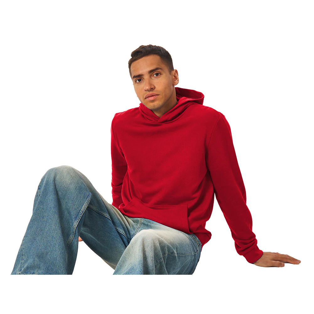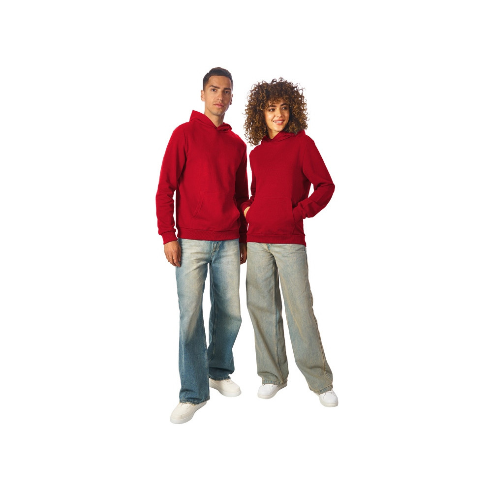 Толстовка с капюшоном (худи) из плотного хлопкового 3х ниточного футера. В капюшоне подкладка в тон, а горловина спинки дополнительно укреплена тесьмой с выделкой елочка. Капюшон без шнурков – ничего не отвлекает от вашего брендирования. Манжеты и низ изделия отделаны рибом 2х2. Глубокий комфортный карман кенгуру на полочке. Полотно из утяжеленного хлопкового футера внутри с петельками без начеса.