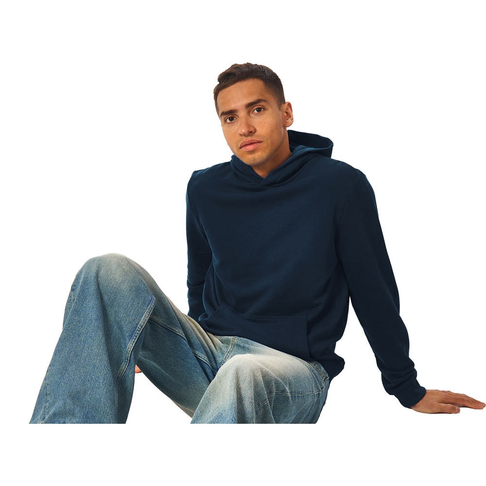 Толстовка с капюшоном (худи) из плотного хлопкового 3х ниточного футера. В капюшоне подкладка в тон, а горловина спинки дополнительно укреплена тесьмой с выделкой елочка. Капюшон без шнурков – ничего не отвлекает от вашего брендирования. Манжеты и низ изделия отделаны рибом 2х2. Глубокий комфортный карман кенгуру на полочке. Полотно из утяжеленного хлопкового футера внутри с петельками без начеса.