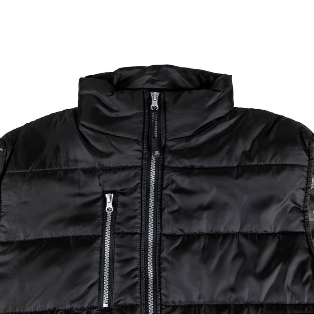 Основная ткань: цвет, близкий к Pantone 5395 U, подкладка: цвет, близкий к 567 U, 533 С, 7541 С Небольшой воротник-стойка. Контрастная облегченная пластиковая молния со съемным пуллером. Три передних кармана на молнии. Внутренний карман на липучке. Контрастная подкладка камуфляж.