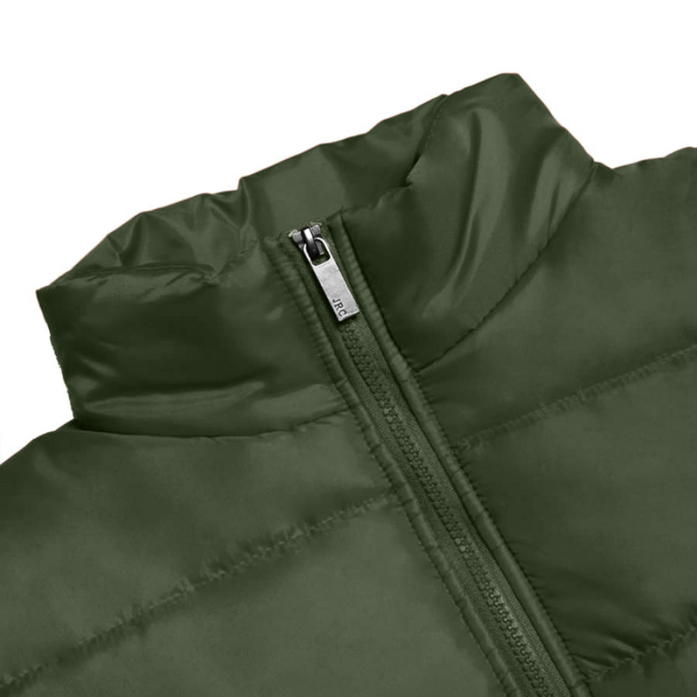 Основная ткань: цвет, близкий к Pantone 350 U, подкладка: цвет, близкий к Pantone Hexachrome Black C Удобный воротник-стойка. Облегченная пластиковая молния с металличесиким брендированным пуллером JRC. Два передних кармана на молнии. Удобный внутренний карман на липучке.