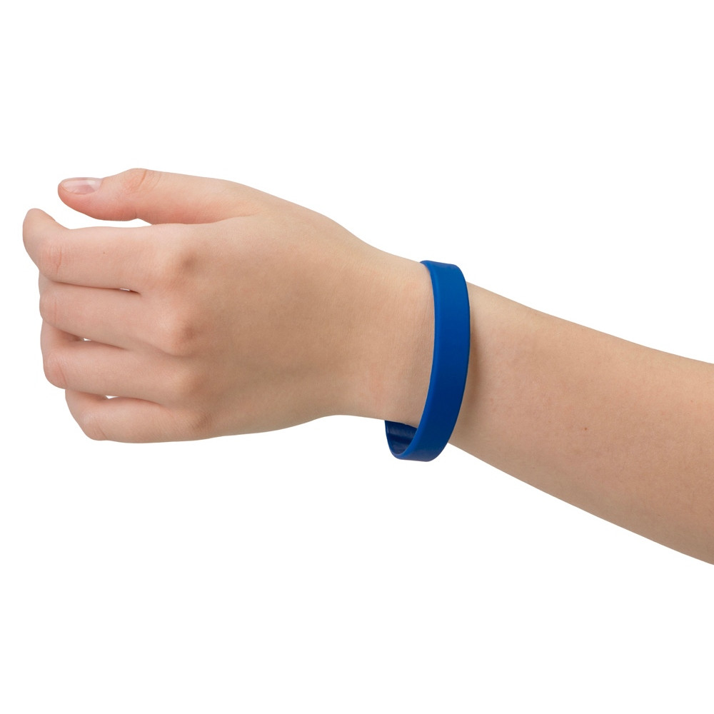 Универсальный размер и гибкий материал позволяют браслету комфортно сесть на руку любой полноты. Это избавит вас от трат на заказ разных размеров, а на мероприятии обеспечит быструю раздачу браслетов и не создаст очереди.