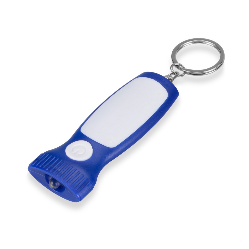 Яркий брелок со встроенным фонариком. Плоская форма и большая ручка с белой вставкой делает брелок удобным для нанесения логотипа.