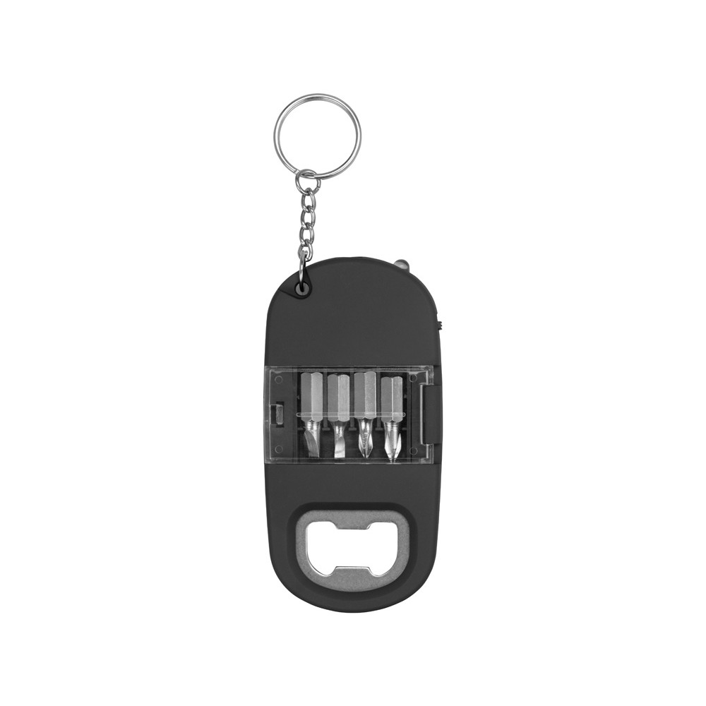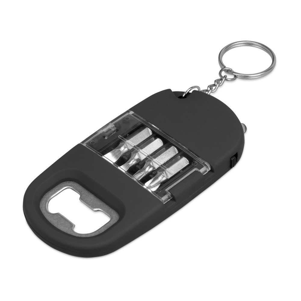 Брелок-открывалка с отвертками и фонариком Uni, софт-тач, черный