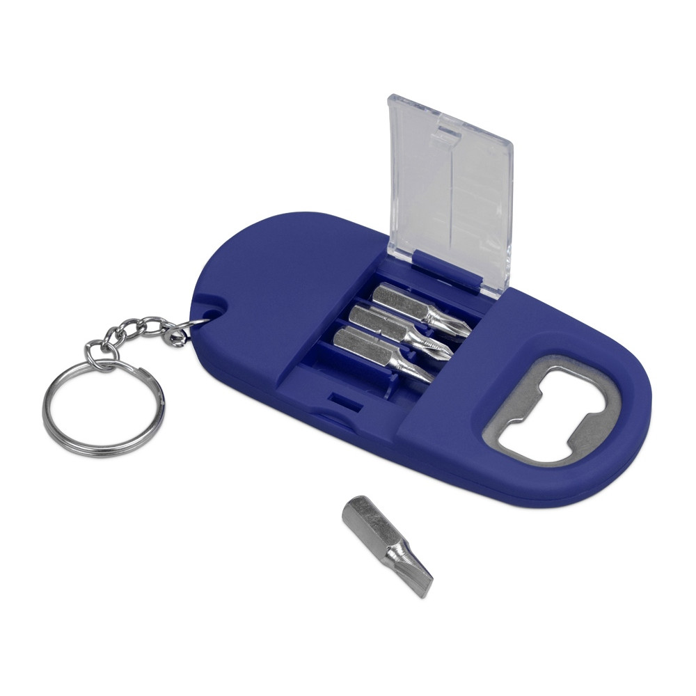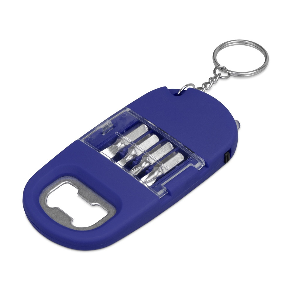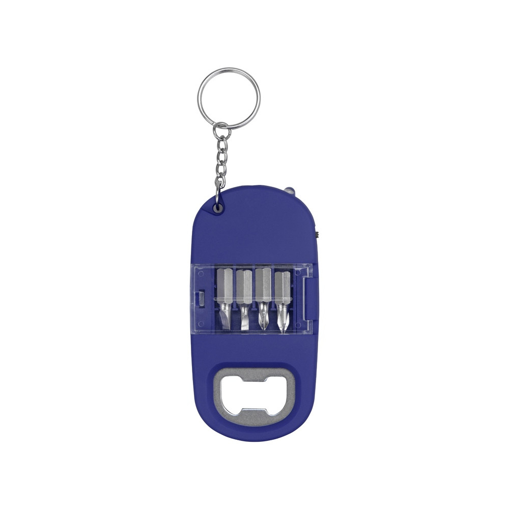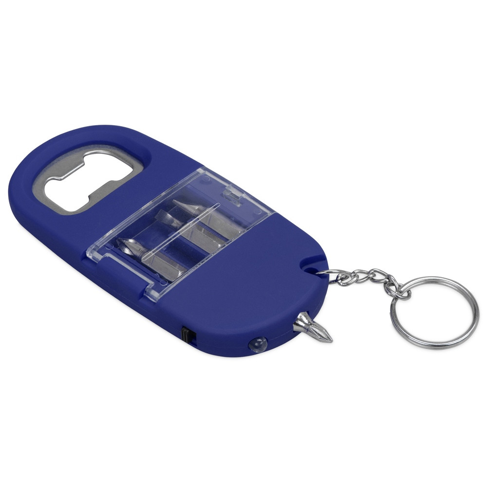 Брелок-открывалка с отвертками и фонариком Uni, софт-тач, синий