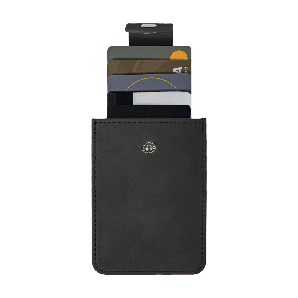 Чехол для карт, цвет черный, PUразмер 10.5х7.5 смВнутри выдвижной механизм с отделениями для 4 карт.Хлястик на кнопке.Упаковка - пластиковый пакет