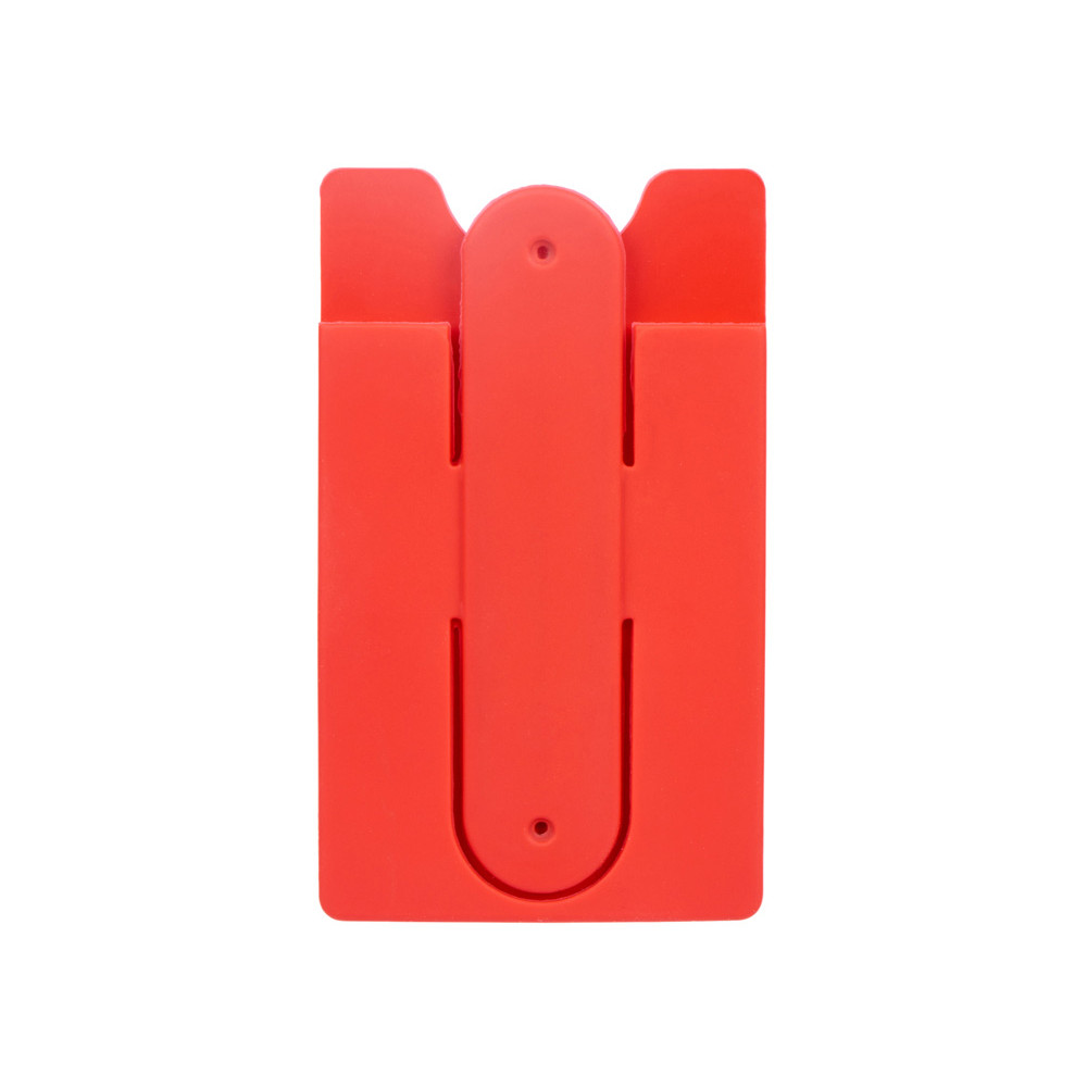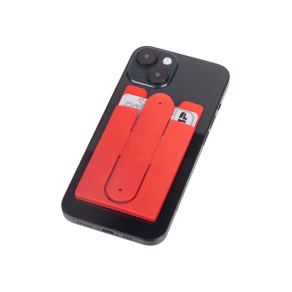 Чехол для визиток и кредитных карт с функцией подставки. За счет клейкой основы прикрепляется к обратной стороне телефона или любой другой плоской поверхности.