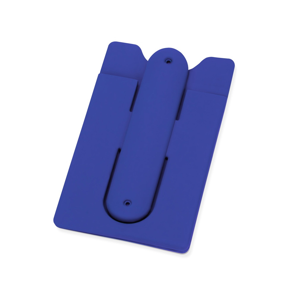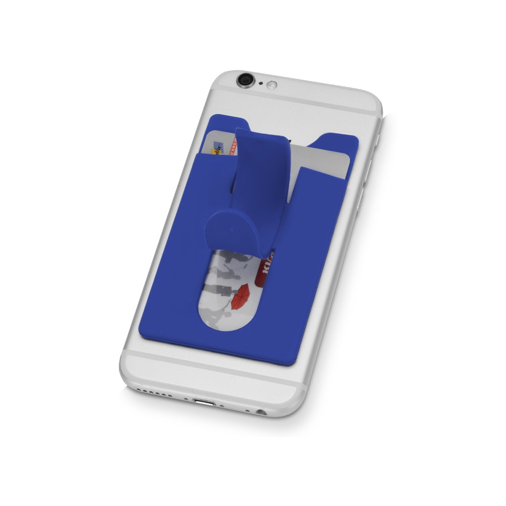 Чехол для визиток и кредитных карт с функцией подставки. За счет клейкой основы прикрепляется к обратной стороне телефона или любой другой плоской поверхности.