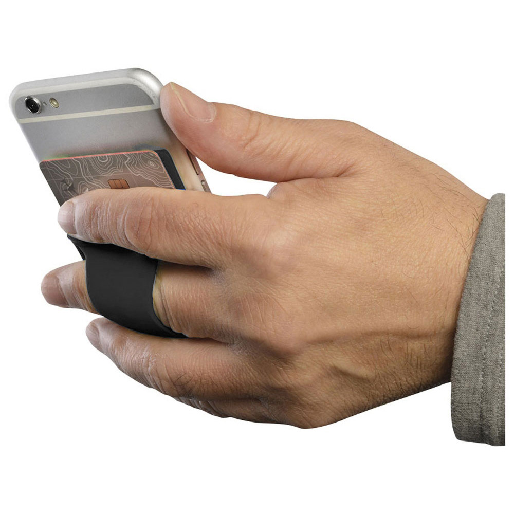 Силиконовый картхолдер для телефона с отверстием для пальца. Картхолдер можно легко прикрепить практически ко всем смартфонам с плоской панелью сзади при помощи липкой ленты. В него можно поместить кредитную карту/ идентификационную карту/ карту-ключ от номера / 5 визиток или банкноты. Отверстие для пальца для более удобного удержания телефона.
