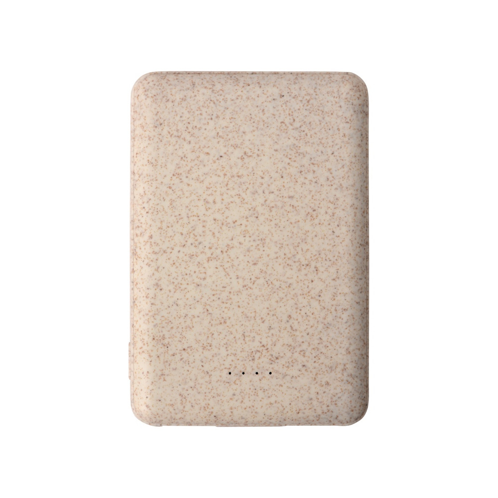 Портативное зарядное устройство Wheatty на 35% состоит из переработанной пшеничной соломы, что является положительным примером сокращения производства и потребления пластика в мире. Повербанк имеет миниатюрный размер и небольшой вес. Может заряжать два устройства одновременно. Поставляется в крафт упаковке из переработанной бумаги.