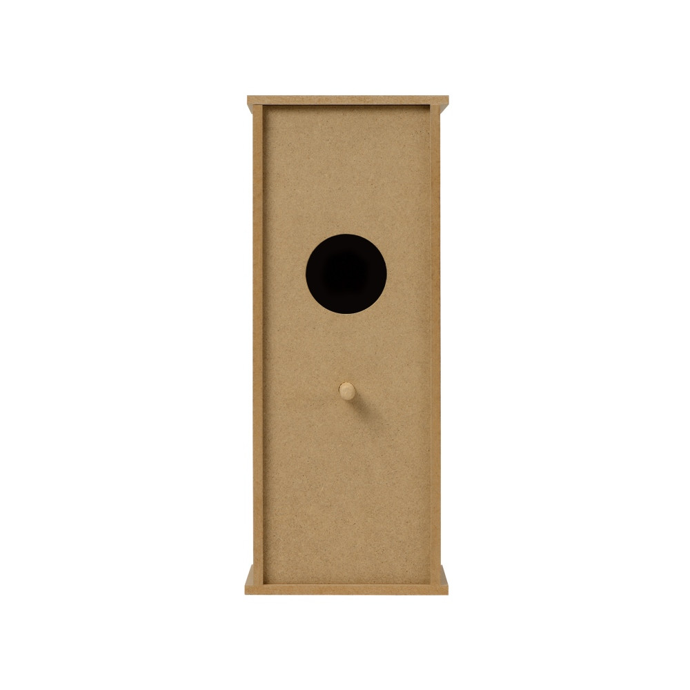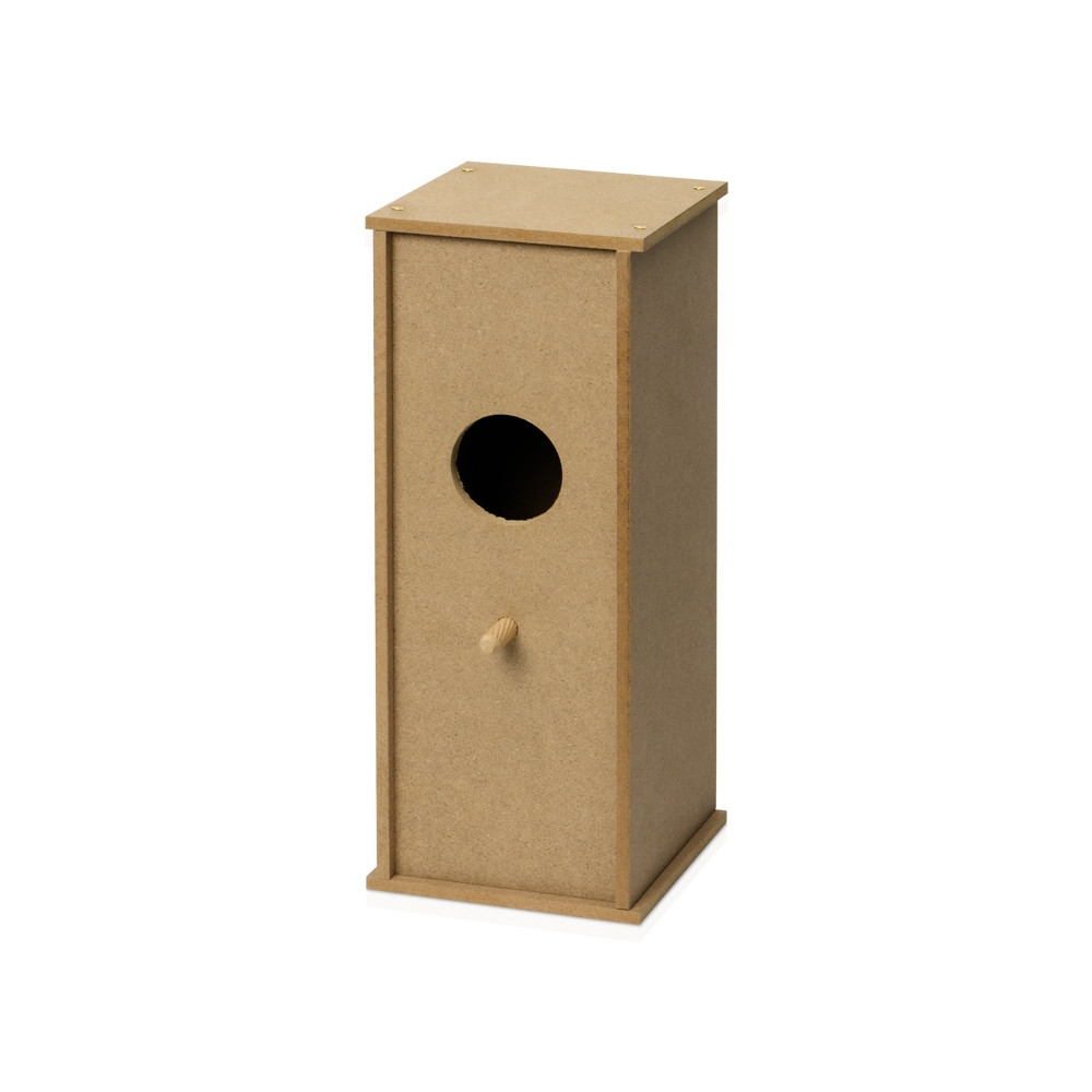 Сборный скворечник из МДФ поставляется в виде отдельных деталей в крафтовой упаковке. Собрать домик для птиц очень просто: понятная инструкция объяснит, как соединять детали, а приложенные винтики и жердочка-колышек помогут их скрепить.