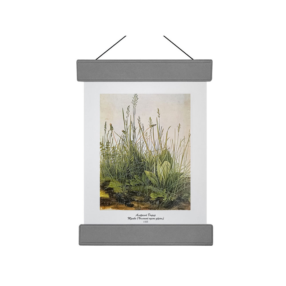 Принцип действия рамки очень прост: вам надо зажать верхней книжкой верхний срез плаката или фото, а нижней — соответственно, нижний. Хотя части рамки весят немного, их вес позволит плакату или холсту распрямиться и сохранять ровное положение.