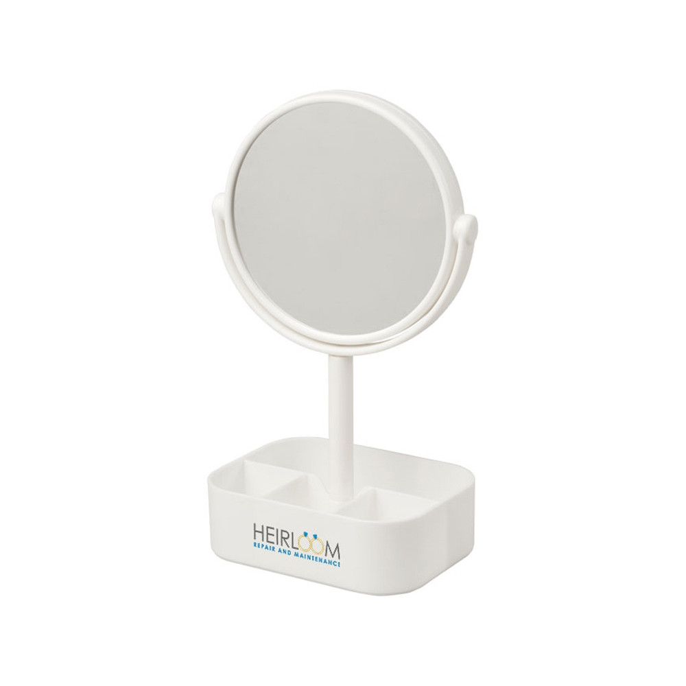 Косметическое зеркало Laverne. Двустороннее вращающееся зеркало с подставкой-органайзером. В повернутом положении зеркало обеспечивает 2-кратное увеличение отражения. Ударопрочный полистирол, стекло. 0,23.