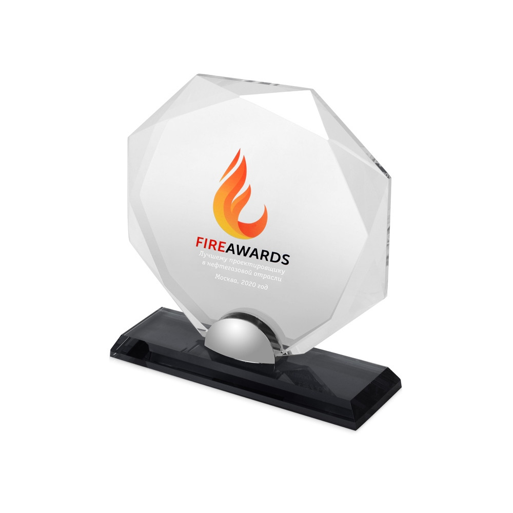 Прекрасный сувенир для вручения коллегам и партнерам за выдающиеся достижения. Оригинальная форма напоминает ограненный бриллиант. Основание выполнено из цветного стекла.