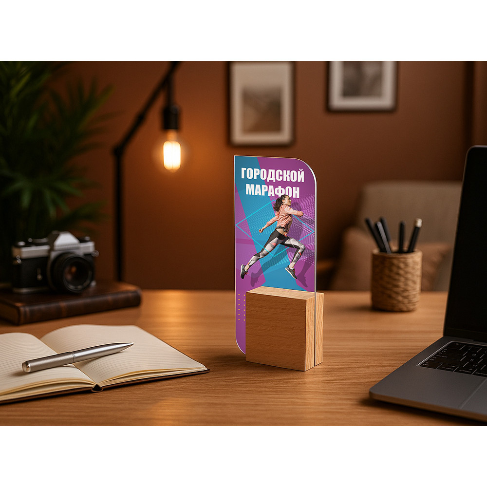 Наградная стелла из бука и акрила. Акриловую часть можно полностью запечатать методом УФ-печати.