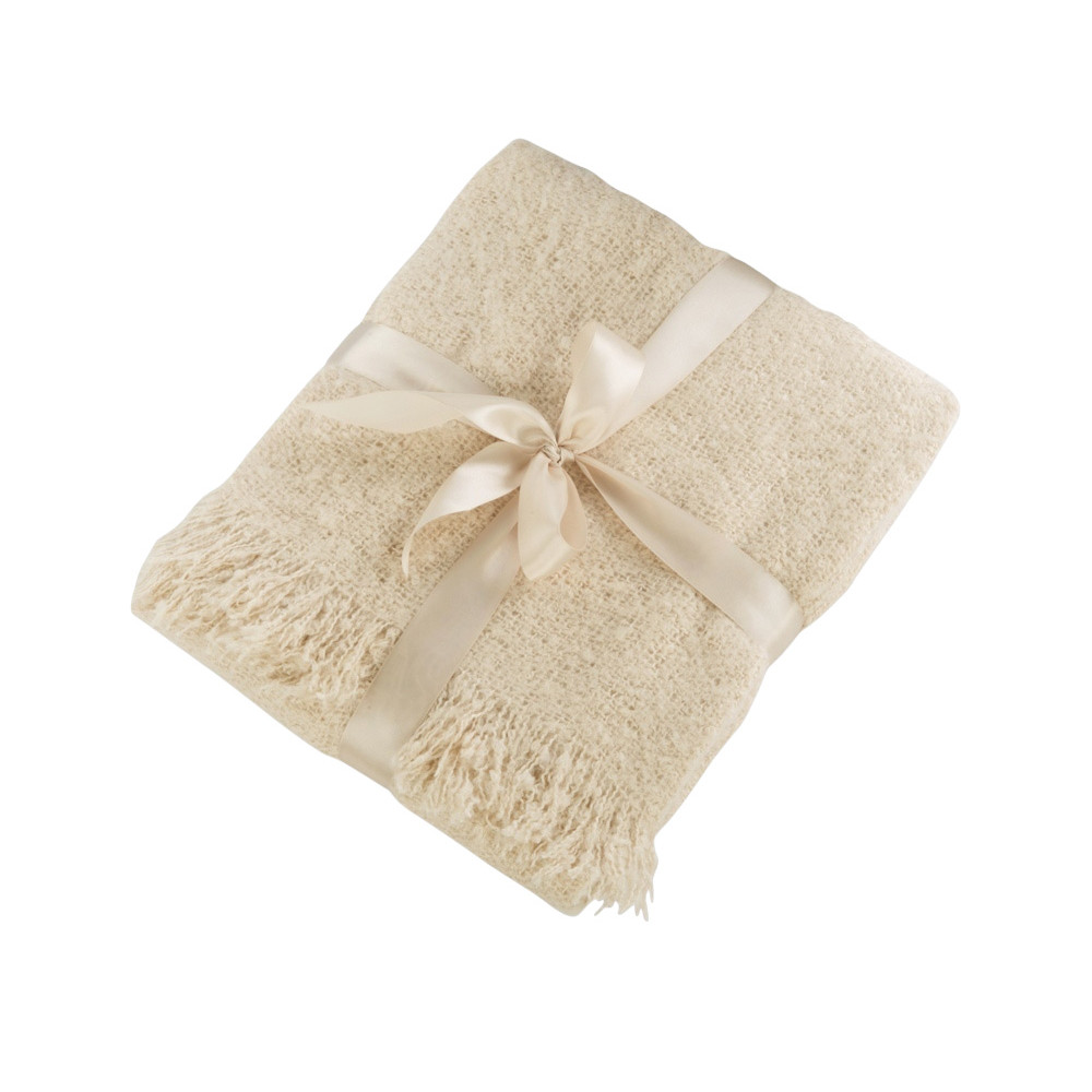 Мягкий и теплый плед из искусственного мохера-акрила подойдет под любой интерьер и согреет в прохладную погоду благодаря способности акрила хорошо удерживать тепло. Украшен бахромой и сатиновой лентой в тон.