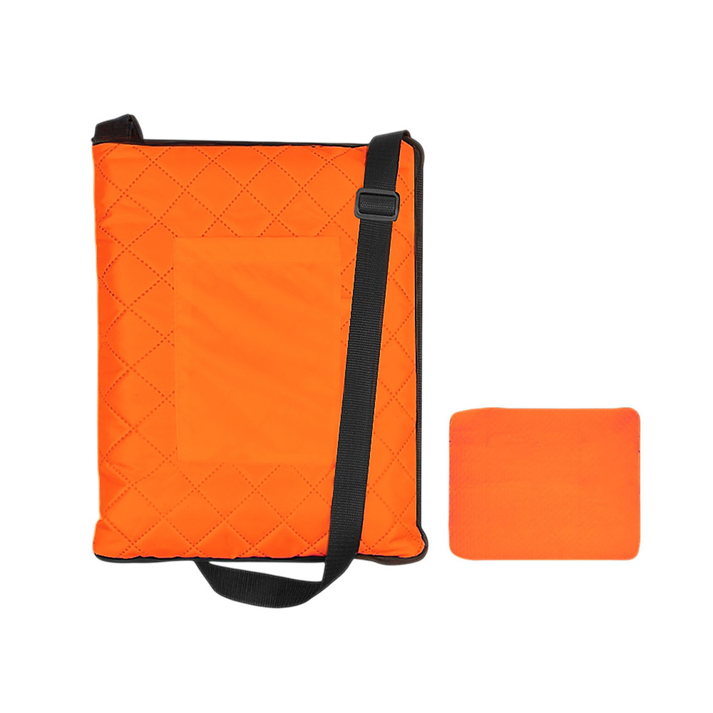 Двухсторонний плед с водоотталкивающим покрытием с одной стороны и мягким флисом с другой. Складывается в сумку на плечо и фиксируется с помощью молнии. В собранном виде имеет регулируемый по длине ремень для переноски и наружный карман для мелочей.