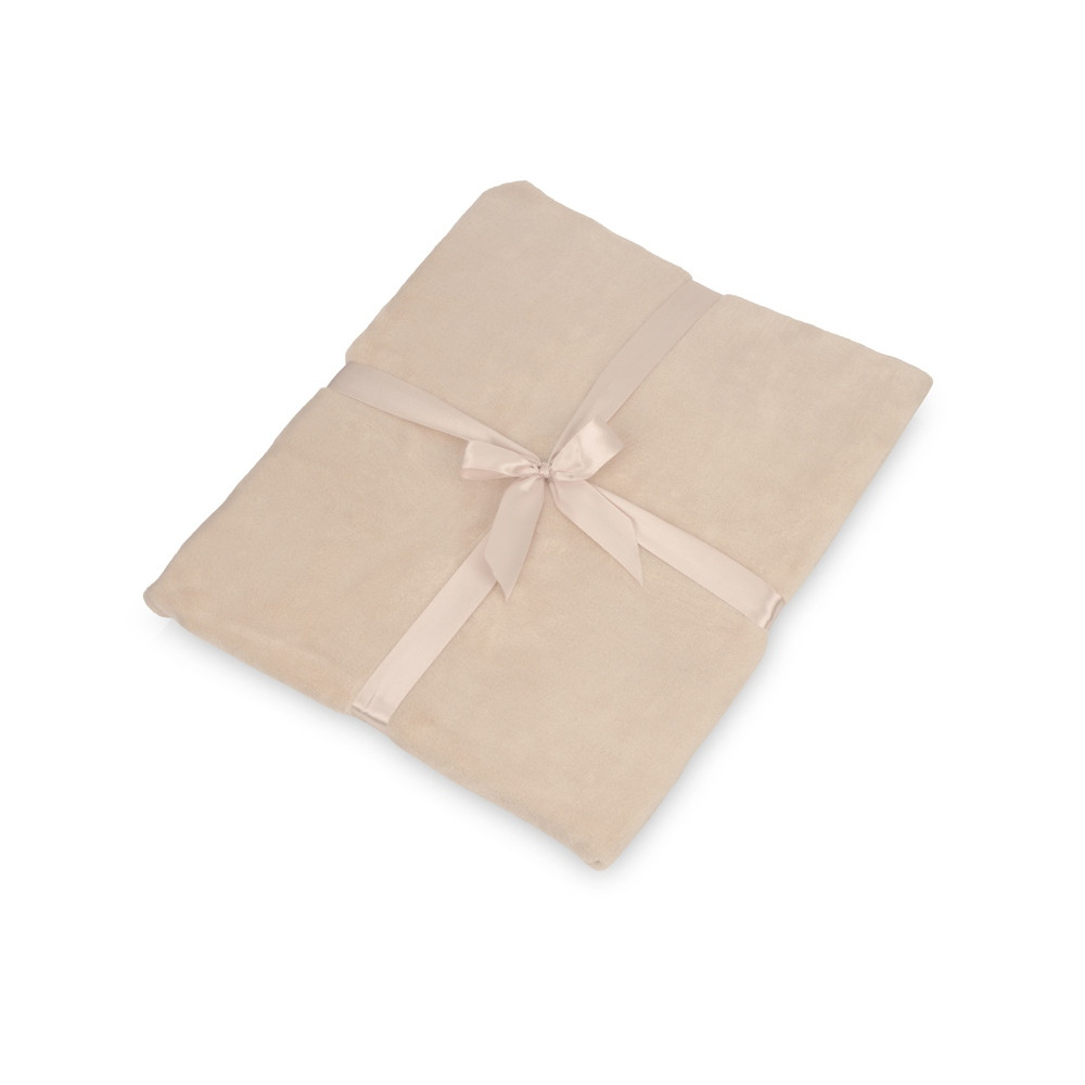 Плед флисовый Natty из переработанного пластика, бежевый со светло-розовой лентой