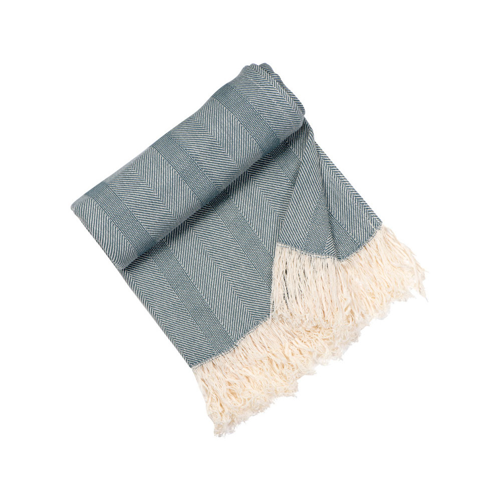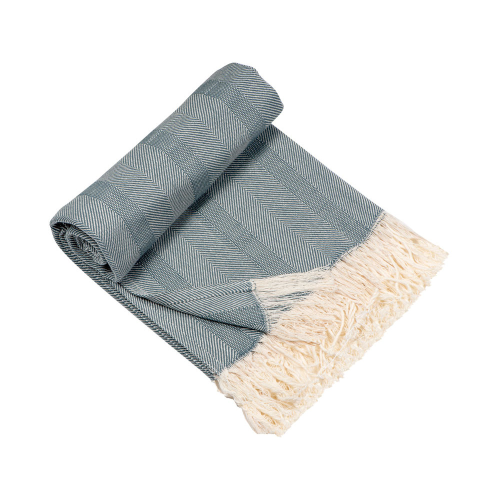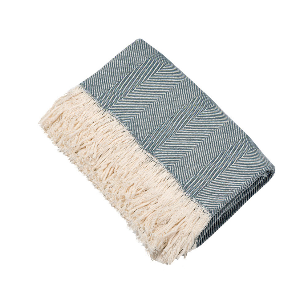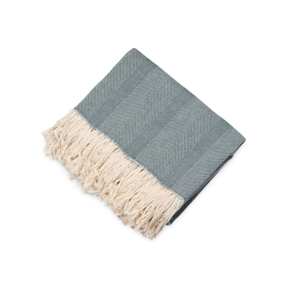 Плотный плед из натурального хлопка с бахромой по бокам. Можно использовать как одеяло или как покрывало для украшения интерьера.