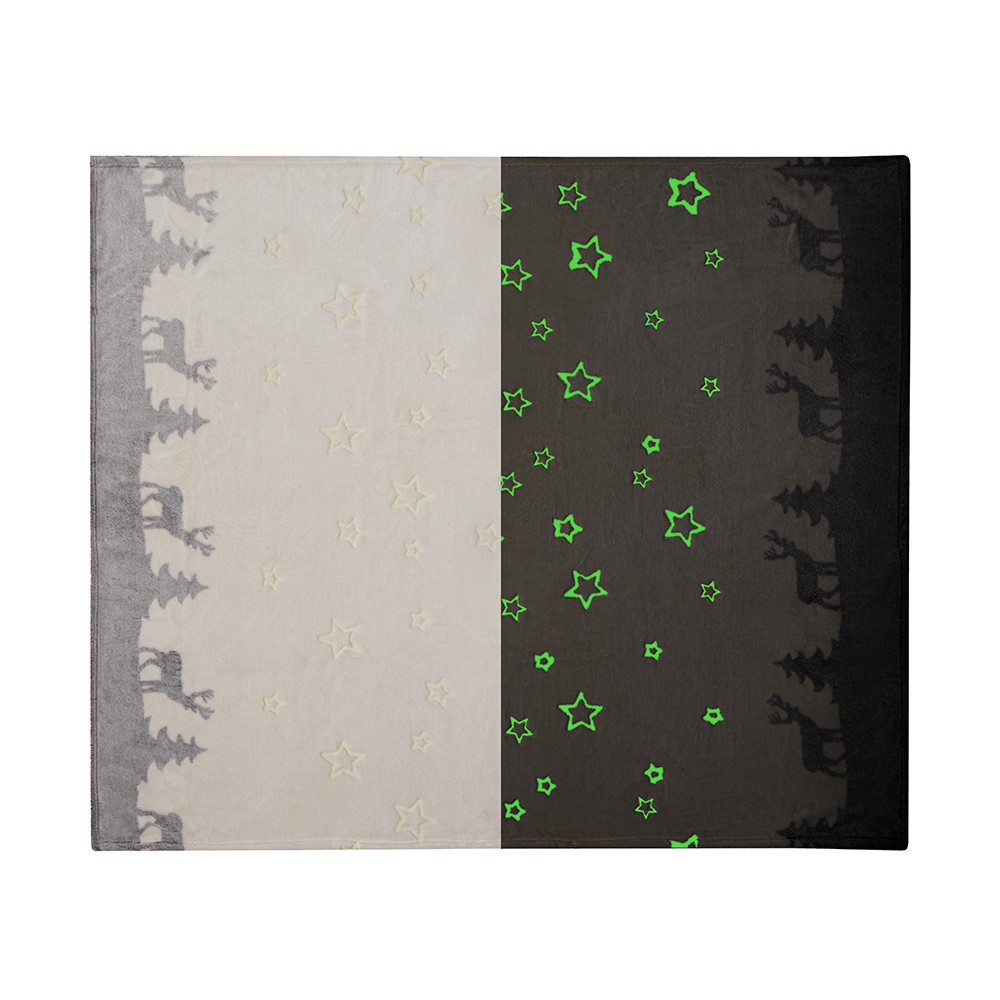 Размер 130х150 см, мягкий приятный на ощупь флис, новогодний принт светится в темноте, создаст уютную обстановку дома, подойдет под любой интерьер, согреет в прохладную погоду.
