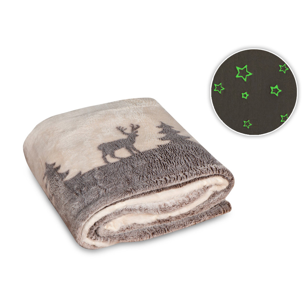 Плед из флиса Новогодний светящийся, бежевый