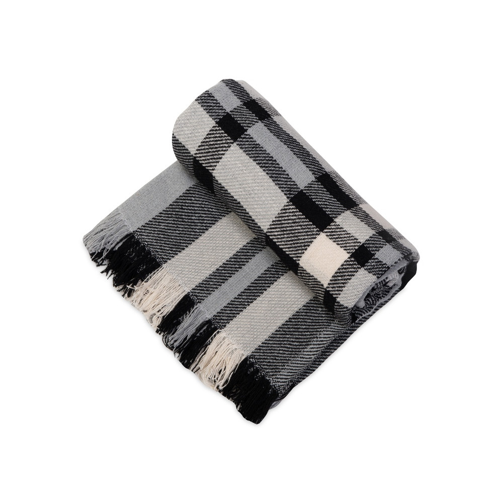 Плед Liner с бахромой, 140*205 см., серый с черным