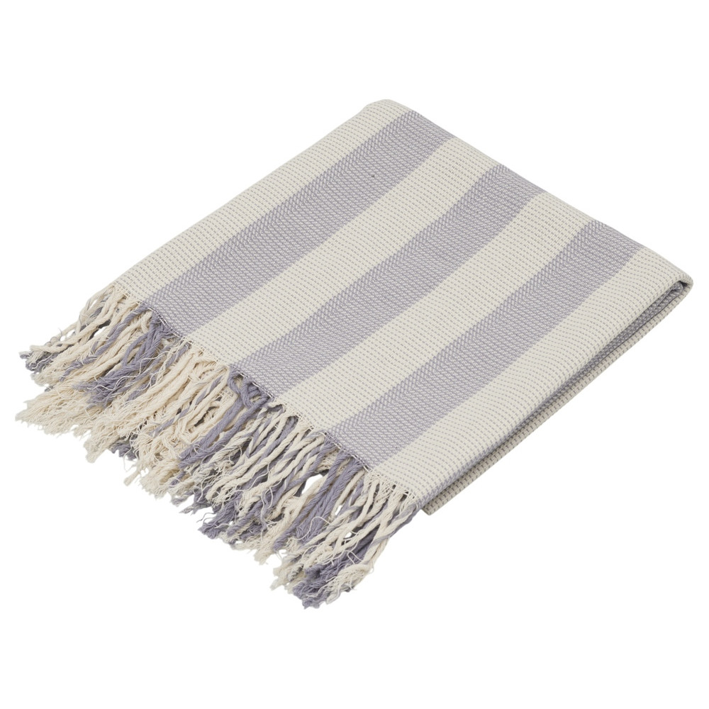 Хлопковый натуральный плед в модную полоску можно использовать как одеяло или как покрывало для украшения интерьера. Бахрома по бокам добавит комфорта и стиля. Немаркие цвета и легкий уход создают дополнительный комфорт при использовании.