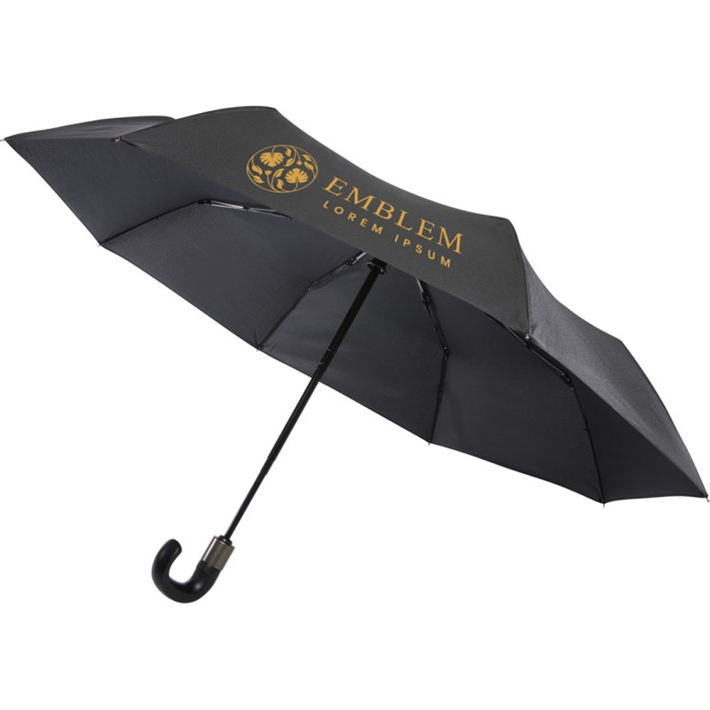 Montebello 21-дюймовый складной зонт с автоматическим открытием/закрытием и изогнутой ручкой, черный