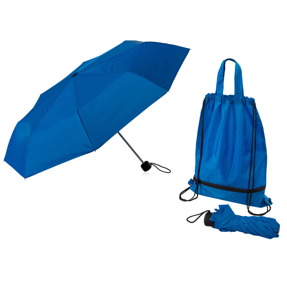 Механический зонт с прорезиненной ручкой идет в комплекте с сумочкой для покупок. На дне сумочки предусмотрен карман на молнии, в котором вы можете хранить зонт дома или прятать в него мокрый зонт, когда вы попали под дождь. Находясь в кармане сумочки, мокрый зонт не доставит неудобств. Сумочка имеет 2 варианта использования: шопер с двумя 2 ручками и рюкзак-мешок со шнурками.