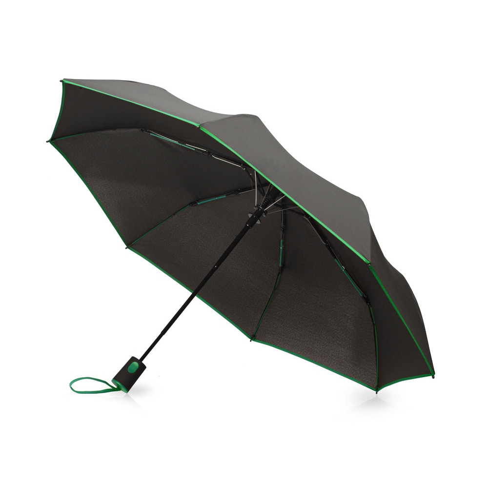 Зонт-полуавтомат складной Motley с цветными спицами, черный/зеленый