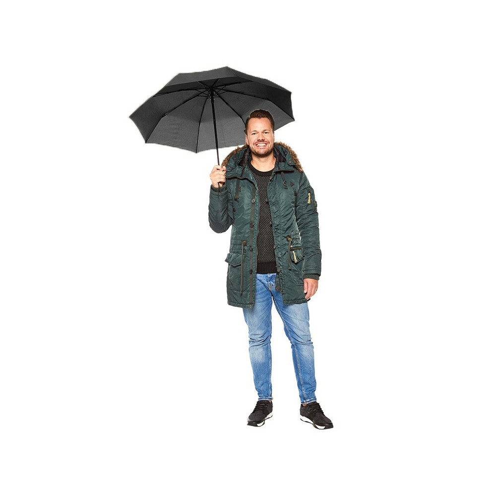 Добротный автоматический зонт с куполом из эпонжа и гибкими спицами из стекловолокна спасет от дождя и выстоит против порывов ветра. Чехол в комплекте
