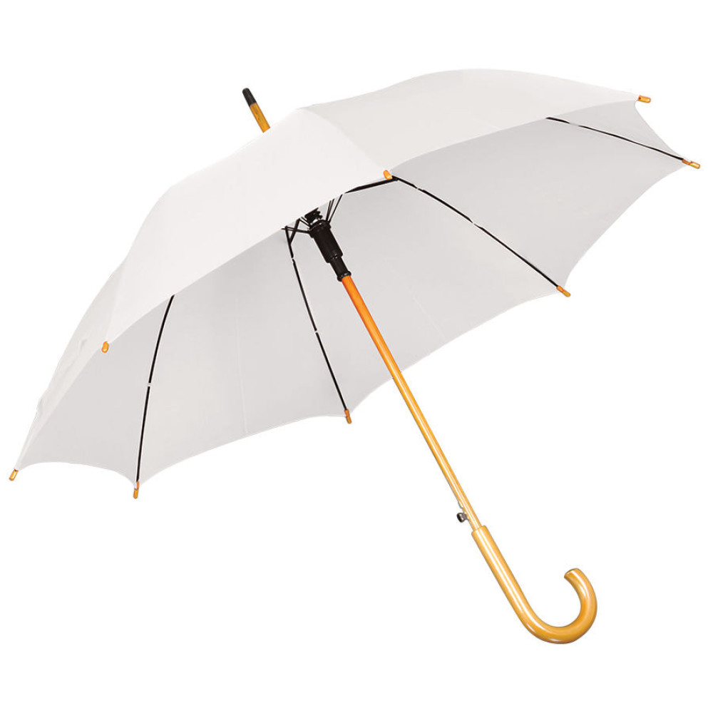 Зонт-трость с деревянной ручкой, полуавтомат; белый; D=103 см, L=90см; 100% полиэстер