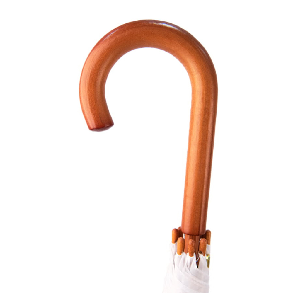 Зонт-трость с деревянной ручкой, полуавтомат; белый; D=103 см, L=90см; полиэстер