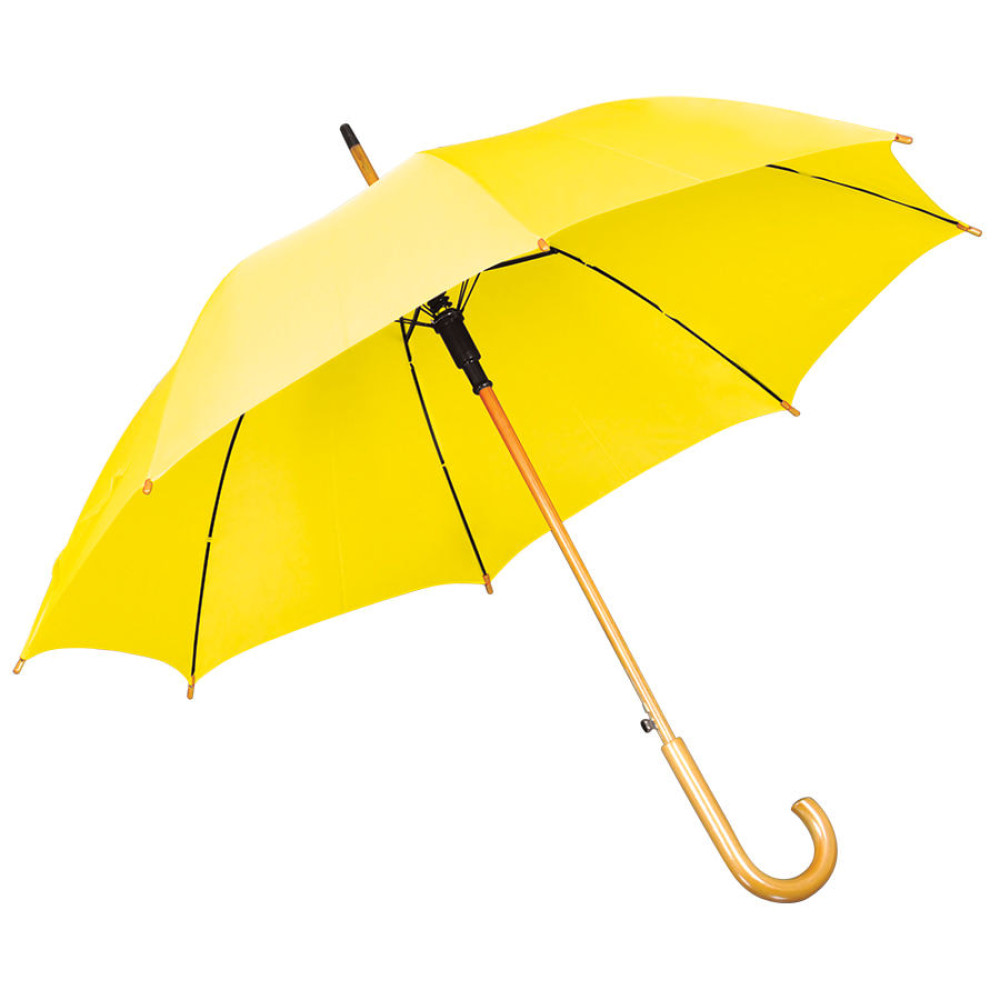Зонт-трость с деревянной ручкой, полуавтомат; желтый; D=103 см, L=90см; 100% полиэстер
