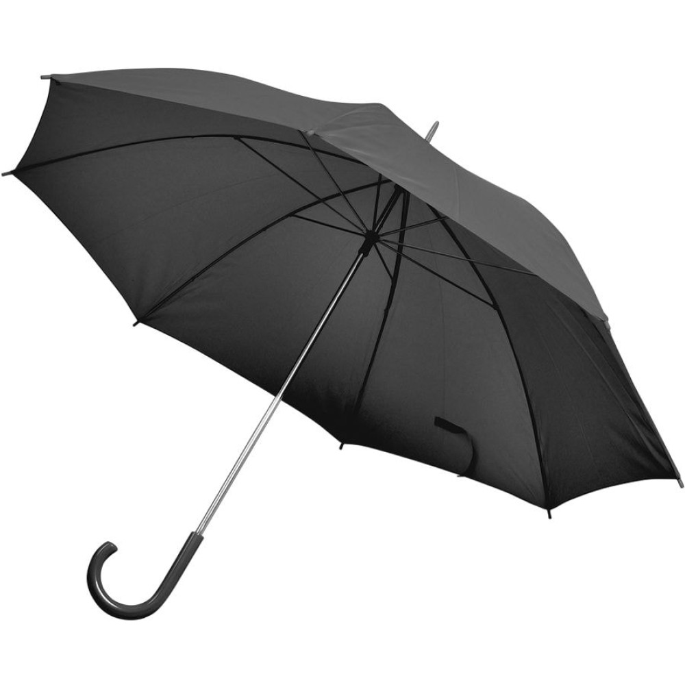 Зонт-трость, механический Диаметр купола: 103 см, длина стержня: 84 см. Состав купола: 100% полиэстер 190T Состав спицы и стержень: металл Пластиковая ручка в цвет купола. Цвет купола близкий к пантону Black C.