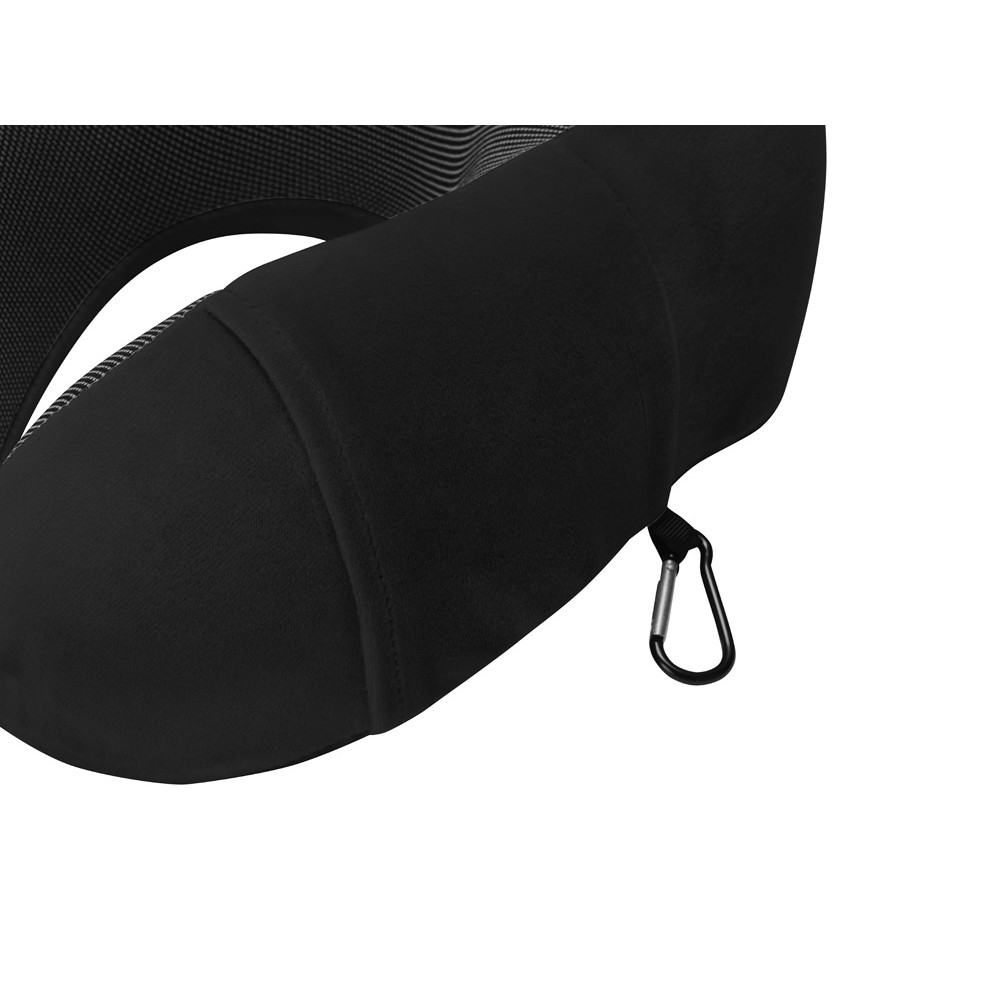 Комфортная подушка для путешествий с эффектом памяти имеет анатомически удобную для шеи форму, которая позволяет разместиться с комфортом во время путешествия. Подушка имеет кармашек, в который можно положить небольшие мелочи, которые сделают путешествие еще удобнее: платок, маску, беруши, наушники, словом, то, что вам может понадобиться во время перелета. Мягкий приятный тактильно материал позволяет расслабиться в объятиях этой подушки, а чехол для переноски и карабин для крепления делают хранение и использование еще удобнее. Застежка на шее позволяет регулировать положение, чехол можно снять и постирать на режиме, который указан на ярлычке. Дышащий материал на внутренней части чехла подушки делает ее идеальным компаньоном для поездок даже в жарком климате.